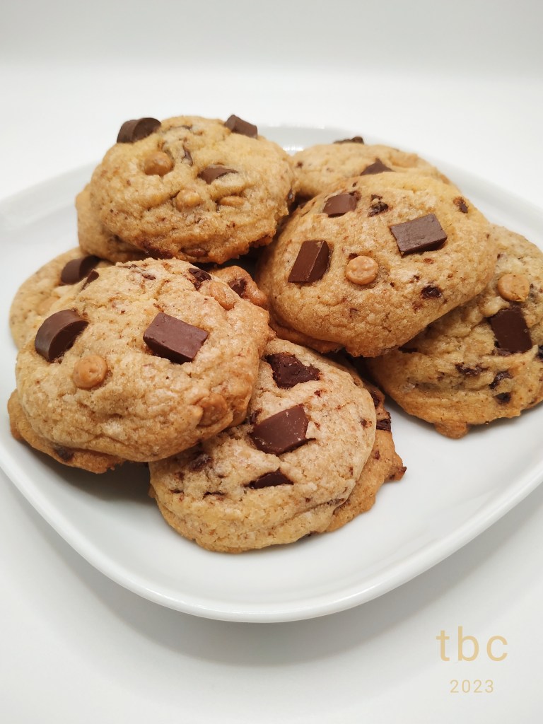 Dies ist eines von vielen möglichen Cookie-Rezepten. Schön an diesem hier ist, dass man keinen Mixer benötigt (lediglich eine Schüssel und einen Schneebesen) und dass die Cookies nicht gar so extrem übersüßt sind, wie viele andere Rezepte, da sie lediglich braunen Zucker beinhalten und nicht auch noch weißen.